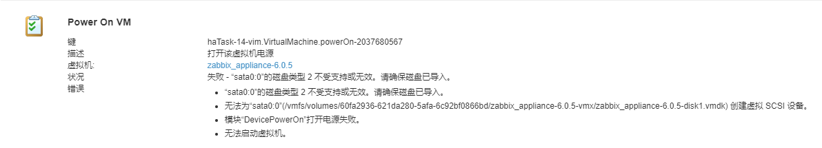 转换后将zabbix_appliance-6.0.5-disk11.vmdk磁盘添加到虚拟机中,顺利开机。