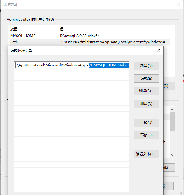 在PATH 项添加;%MYSQL_HOME%\bin,如图
