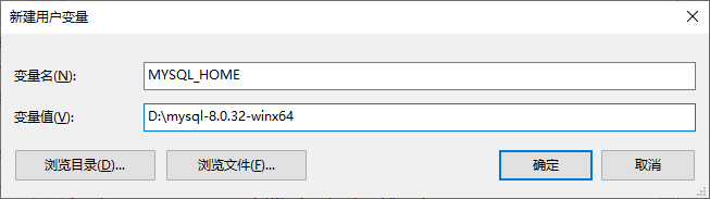 属性==》高级系统设置==》环境变量==》新建环境变量 :变量名:MYSQL_HOME ,变量值:数据库的路径,我的是:D:\mysql-8.0.32-winx64。注意:此步的作用是在任何路径下能使用MYSQL的命令,否则命令需要跟上绝对路径。如D:\mysql-8.0.32-winx64\mysql -u root -p